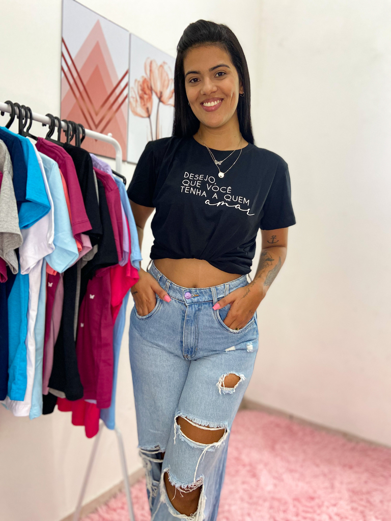 Modelo: T-shirt gola ombro a ombro (soltinha no corpo)